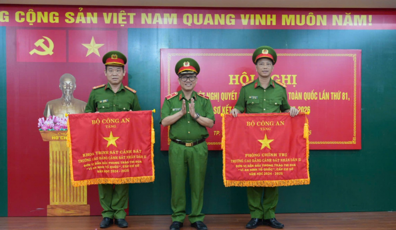 Trao Bằng khen của Chính phủ và cờ thi đua của Bộ Công an tặng các tập thể, cá nhân Trường Cao đẳng CSND II